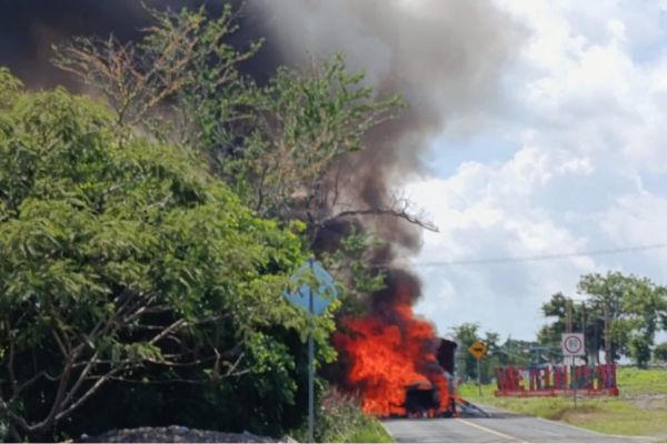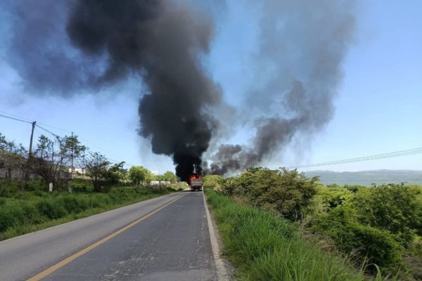 Leopoldo Calderón / Teloloapan. La tarde de este sábado, hombres armados incendiaron cinco tráileres tipo góndola sobre la carretera federal Iguala-Teloloapan.
