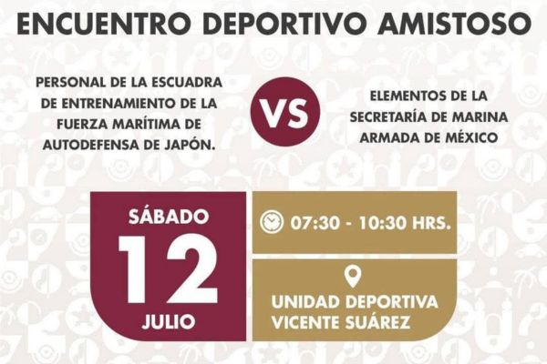 - Encuentro deportivo Mexico-Japón, en la cancha de la unidad deportiva Vicente Suárez, el sábado 12 de julio, de 7:30 a.m. a 10:30 a.m.