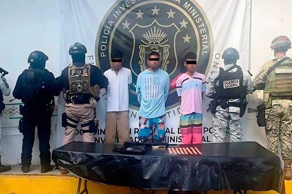 Redacción / Chilpancingo. La Fiscalía General del Estado (FGE), en coordinación con elementos de la Secretaría de la Defensa Nacional (Sedena), Guardia Nacional (GN), Secretaría de Marina (Semar), Secretaría de Seguridad y Protección Ciudadana (SSPC) y la Secretaría de Seguridad Pública del Estado de Guerrero (SSPG), detuvo en flagrancia a tres personas del sexo masculino, identificadas como Luis “N”, Germán “N” y Martín “N”, en el municipio de Acapulco.