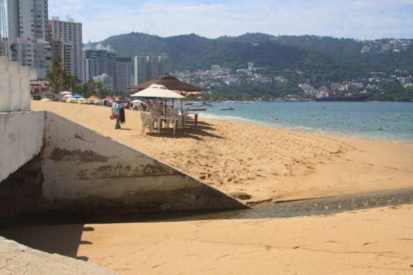 En el último mes autoridades municipales confirmaron vertimientos temporales de aguas residuales en varios puntos de la bahía de Acapulco, sobretodo en zonas cercanas a colectores sanitarios en renovación, lo que provocó descargas al mar.