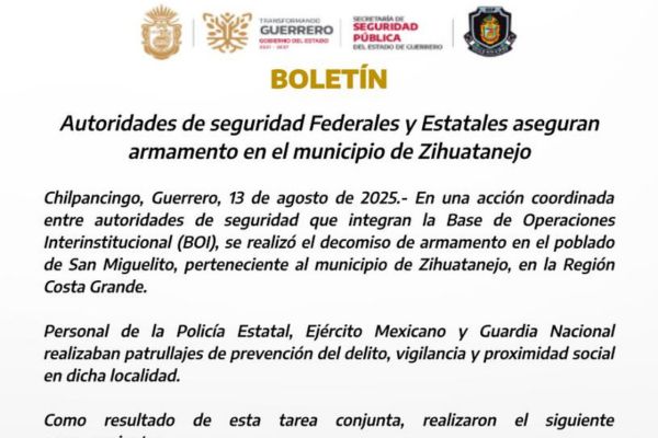 Redacción. Fuerzas de seguridad federales y estatales han asegurado un lote de armamento en Zihuatanejo, Guerrero, como parte de los esfuerzos continuos para combatir la delincuencia en la región.