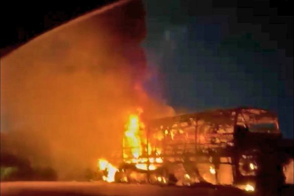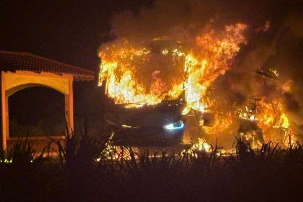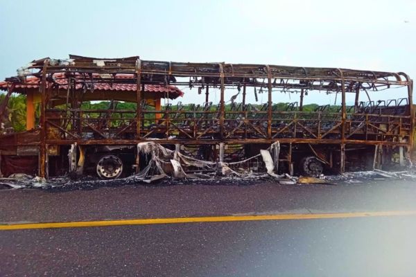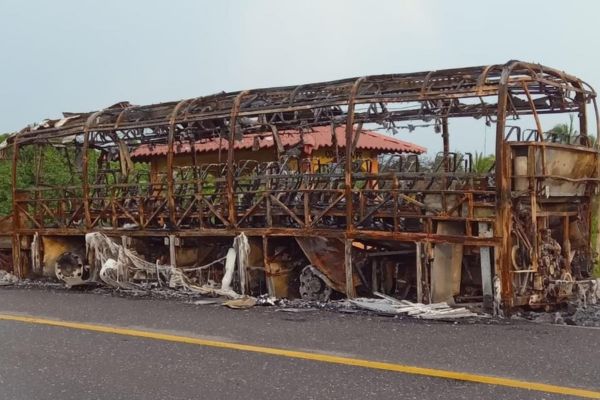 Redacción. Anoche, alrededor de las 11 de la noche, un autobús de la empresa Estrella de Oro se incendió sobre la carretera a Petacalco, en el municipio de La Unión.