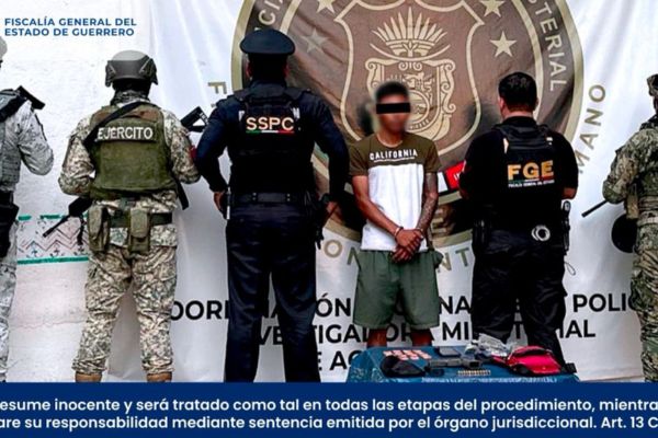 Redacción. La Fiscalía de Guerrero, el Ejército, la Marina y la Guardia Nacional logró la detención en Acapulco de Jesús “N”, presunto integrante de una banda criminal dedicada a la venta de drogas. La captura se realizó en flagrancia.