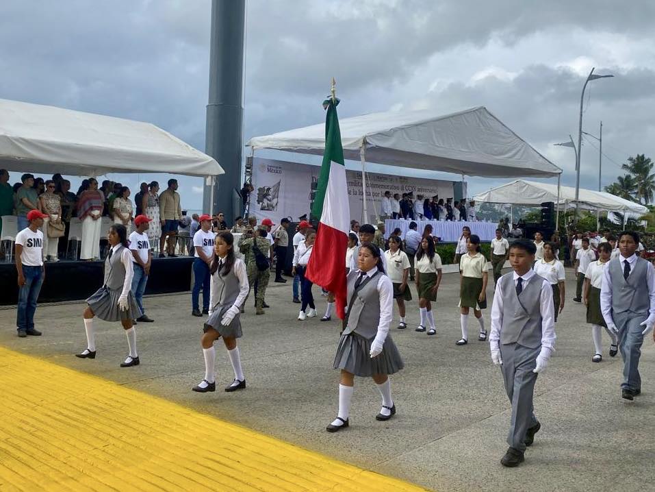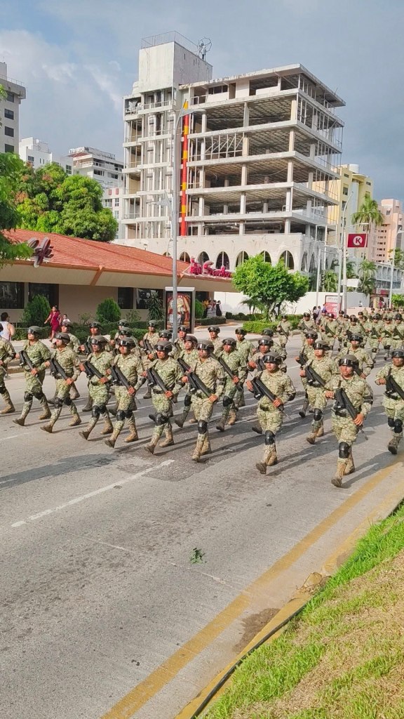 Encabezado por el general Antonio Melchor Ruiz, comandante de la 27 Zona Militar, más de 3 mil participantes –de fuerzas armadas, Guardia Nacional, corporaciones locales y estudiantes– desfilaron desde el Asta Bandera hasta La Diana Cazadora.