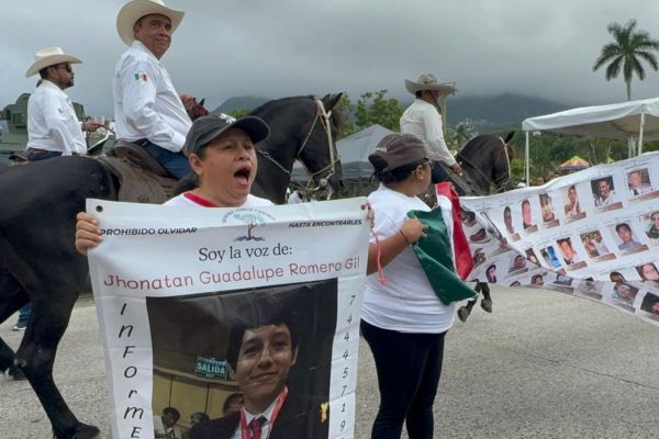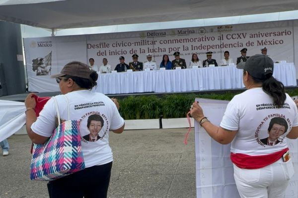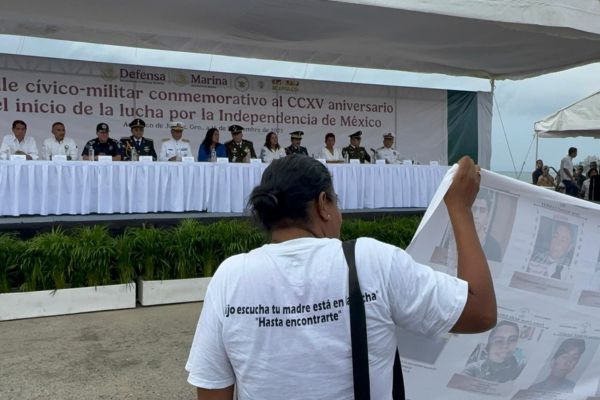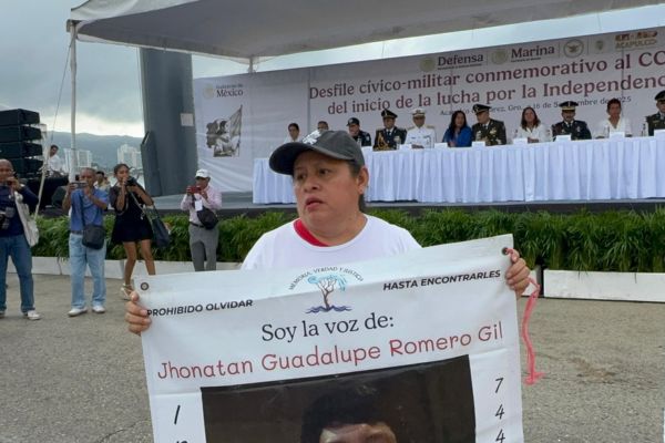Redacción. Al concluir el desfile cívico-militar del 16 de septiembre en Acapulco, el colectivo Memoria, Verdad y Justicia, liderado por Socorro Gil Guzmán, protestó para exigir la búsqueda de sus desaparecidos.