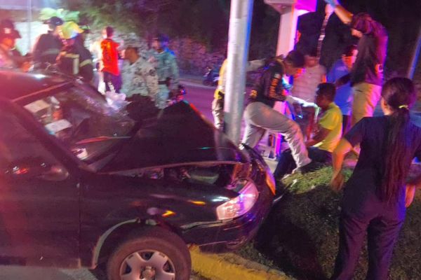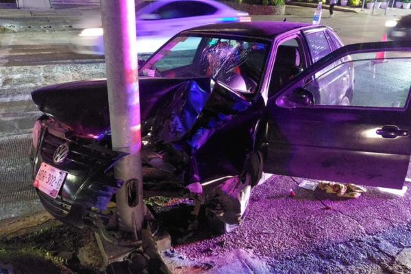 Redacción. La noche de este miércoles, un presunto elemento de la Marina Armada de México protagonizó un aparatoso choque en la avenida Costera, arteria clave de Acapulco. A las 8:40 de la noche, su Volkswagen Pointer negro, placas HDR-302-G, se estrelló contra un poste cerca del Club de Golf, dejando el frente destrozado y al conductor con heridas en la cabeza.
