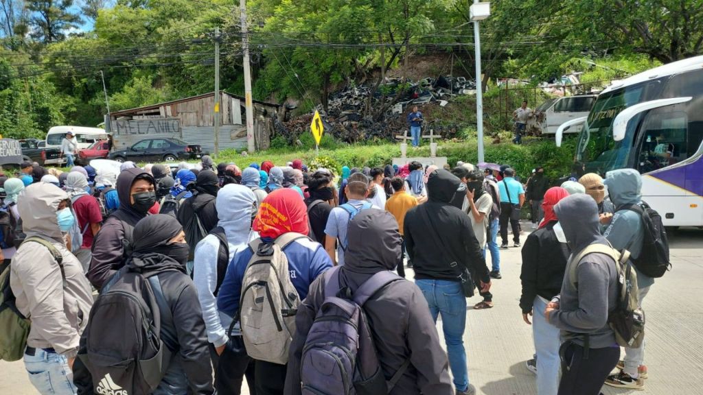 Redacción / Chilpancingo. Unos 23 autobuses cargados de normalistas de la Federación de Estudiantes Campesinos Socialistas de México (FECSM) irrumpieron en la capital guerrerense para bloquear El Parador del Marqués. A las órdenes del día: total cierre vial con camiones de carga y vehículos propios, paralizando el tráfico de autos, tráilers y pasajeros en plena ruta turística.