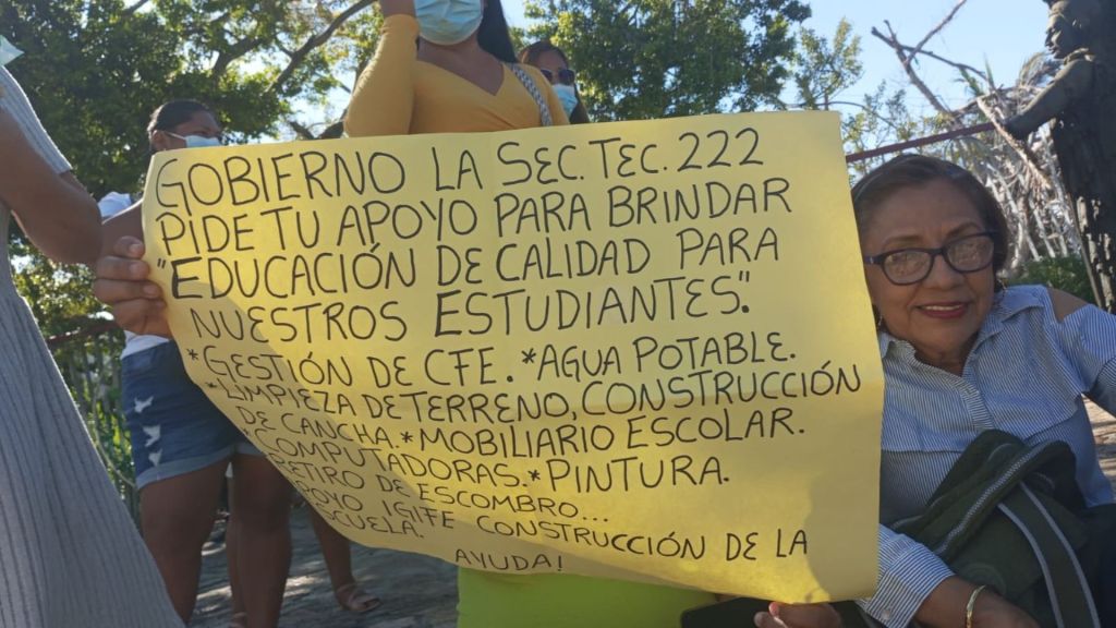 La comunidad escolar denunció que los alumnos estudian en aulas prefabricadas instaladas desde el lejano huracán Paulina (1997), estructuras obsoletas que hoy son un grave riesgo. La directora Martha Campos explicó que un proyecto gestionado con el IGIFE se detuvo por la emergencia de Otis.