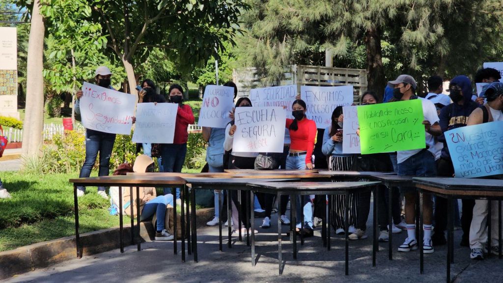 Redacción / Chilpancingo. Más de 50 alumnos de la Escuela Superior de Ciencias Económicas de la Universidad Autónoma de Guerrero (UAGro) irrumpieron esta mañana en el campus, bloqueando la avenida Lázaro Cárdenas sur-norte desde las 8 de la mañana. Pancartas en mano, denuncian un festival de acoso por intrusos externos que siguen a las alumnas hasta sus casas, irrumpen en aulas y hasta se despojan de ropa sin que nadie intervenga.