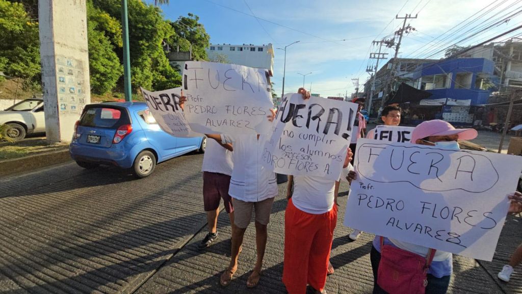 La protesta exige la salida inmediata del profesor de educación física, Pedro Flores Álvarez. Los inconformes denuncian que el docente no asiste a clases y, cuando lo hace, incurre en maltrato hacia los alumnos, dejando a los estudiantes solos en las canchas y en riesgo.