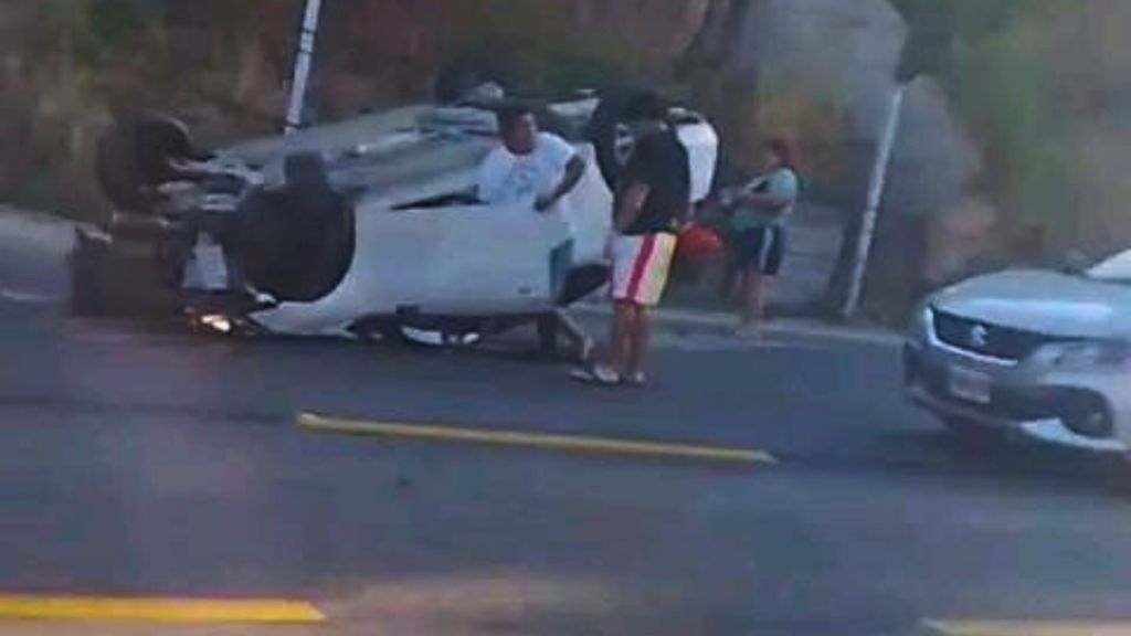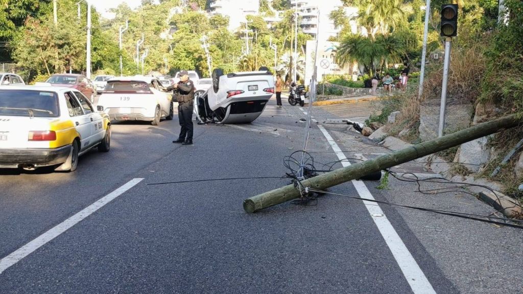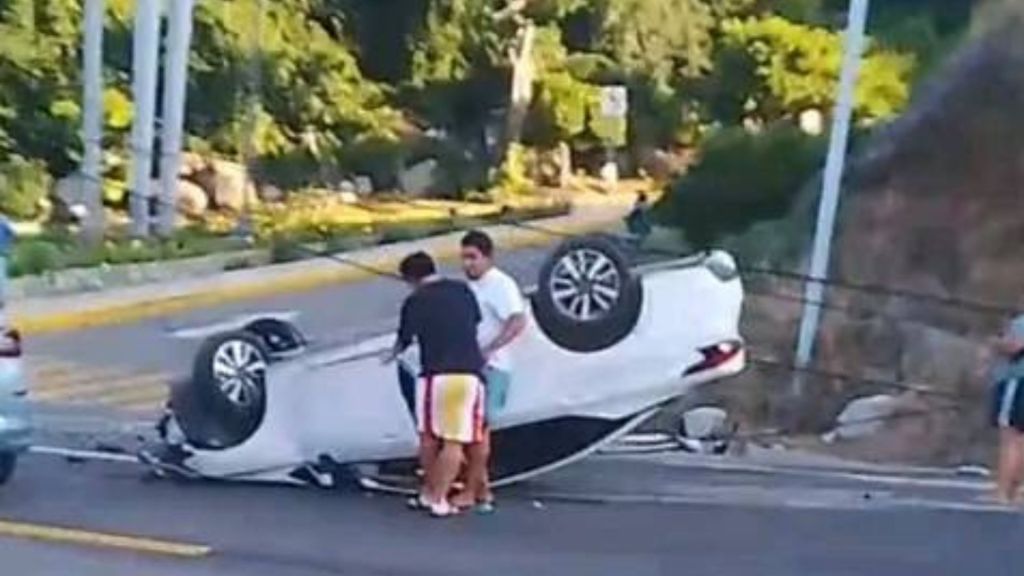 Redacción / Acapulco. La avenida Escénica de Acapulco volvió a ser escenario de un fuerte percance esta mañana de martes. Un vehículo Nissan Versa blanco volcó de forma violenta a la altura de La Cima, dejando a tres personas gravemente heridas. Paramédicos estatales y municipales acudieron de inmediato para atender a los lesionados y realizar el traslado.