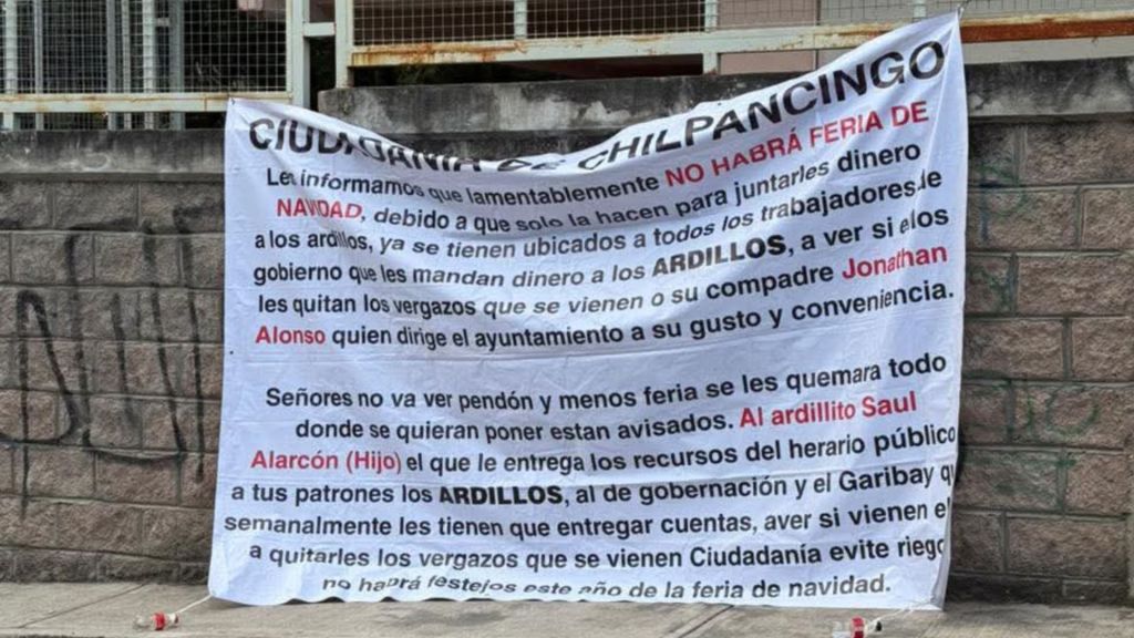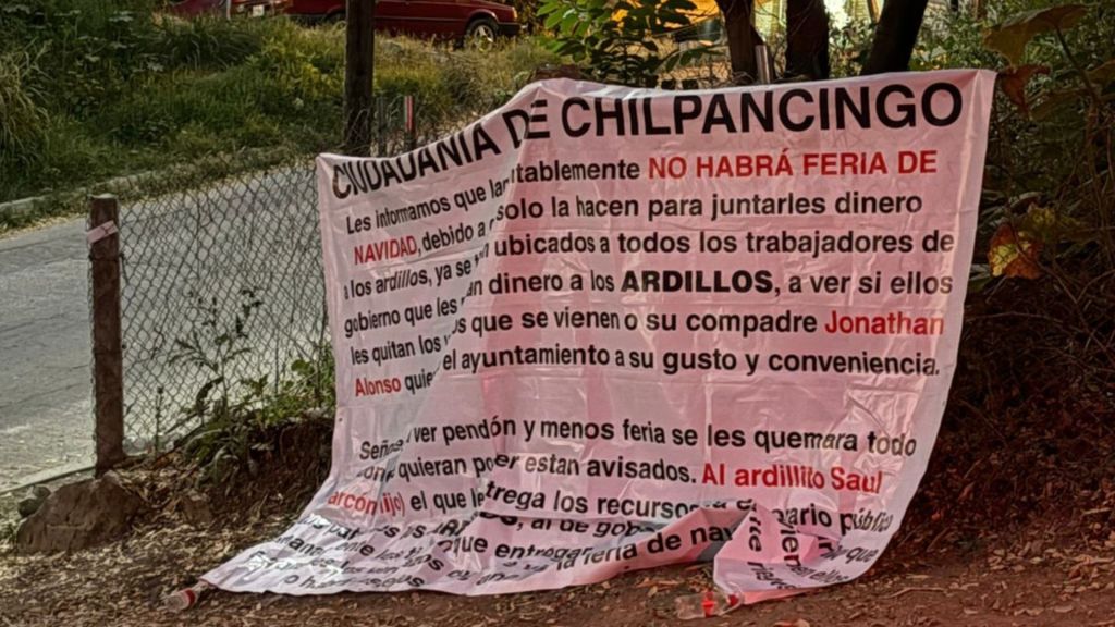 Redacción / Chilpancingo. La madrugada de este miércoles fueron dejadas lonas con mensajes amenazantes en diversos puntos de Chilpancingo, contra funcionarios del Ayuntamiento, en los que también acusan al hijo del alcalde, Gustavo Alarcón Herrera, de entregar dinero a un grupo delictivo.