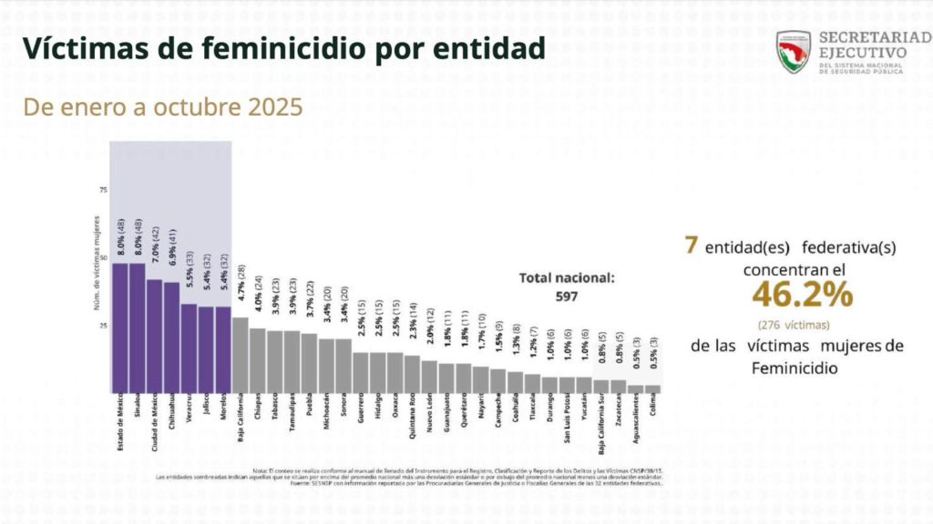 Redacción / Chilpancingo. Guerrero se consolida fuera de los focos rojos: ocupa el puesto 15 en feminicidios con sólo 15 casos de enero a octubre, según el SESNSP, mientras el Estado de México arrastra 48. En todo el país, 513 mujeres cayeron víctimas en nueve meses, pero aquí la curva baja firme.