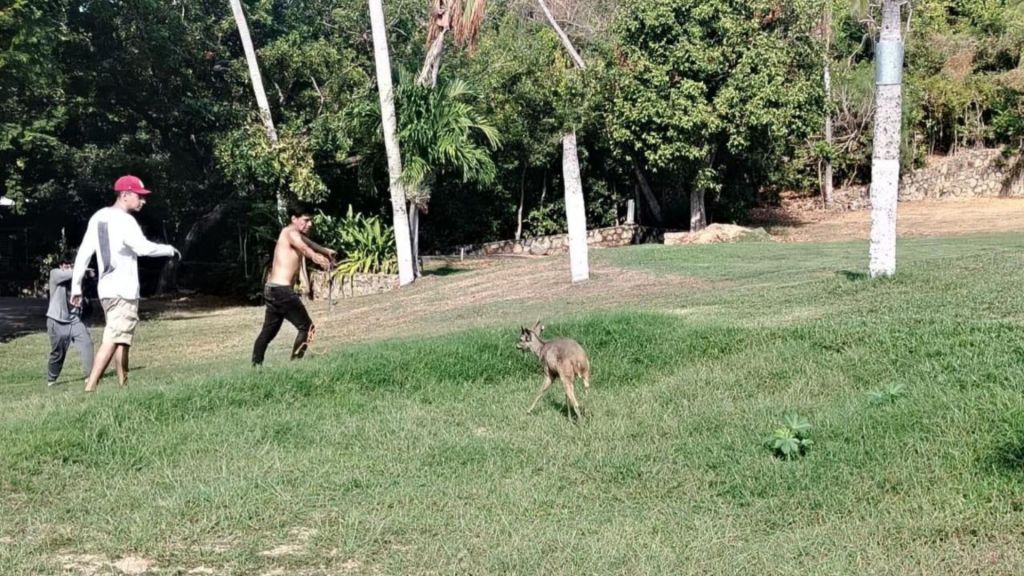 Redacción / Acapulco. La vida en el puerto se volvió viral cuando un venado escapó del Club de Golf, administrado por Fonatur, para dar un paseo por la Costera Miguel Alemán. El ejemplar fue visto deambulando por la zona de La Condesa, sorprendiendo a turistas y locales antes de refugiarse en el bar Barba Roja, donde un policía vial logró interceptarlo.