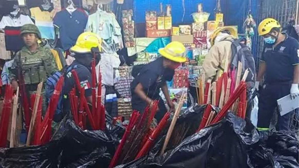 Redacción / Chilapa. La seguridad en los mercados de Guerrero se intensifica. En un operativo sorpresa en Chilapa, autoridades de los tres niveles de gobierno decomisaron más de 7 mil piezas de pirotecnia de alto riesgo. Entre el material asegurado destacan artefactos de gran potencia como Hulks y Bazucas, capaces de causar lesiones irreversibles o incendios masivos.