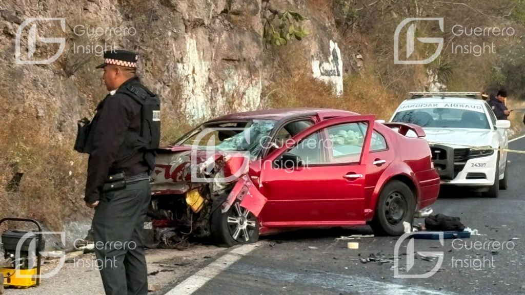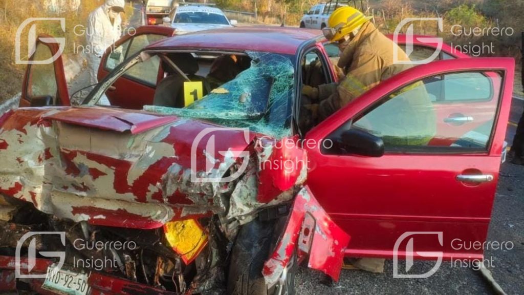Leopoldo Calderón / Eduardo Neri. Dos personas fallecidas y tres más gravemente heridas, entre ellas un menor de edad, fue el saldo de un aparatoso choque automovilístico ocurrido sobre la carretera federal Chilpancingo-Iguala, cerca del kilómetro 204, a escasos metros de la comunidad El Platanal, municipio de Eduardo Neri.