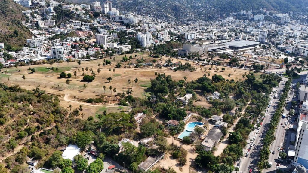 Imágenes aéreas recientes revelan falta de riego y personal trabajando en rehabilitación, pese a promesas iniciales de sanear deudas —superiores a 28 millones de pesos— y mejorar instalaciones dañadas por el huracán Otis (2023) y John (2024).